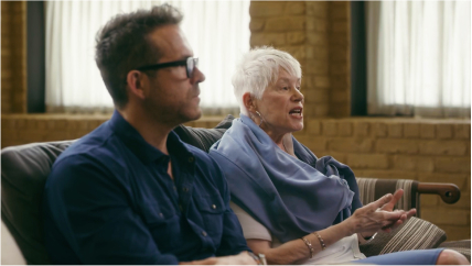 Ryan Reynolds smiling with his mother during an interview